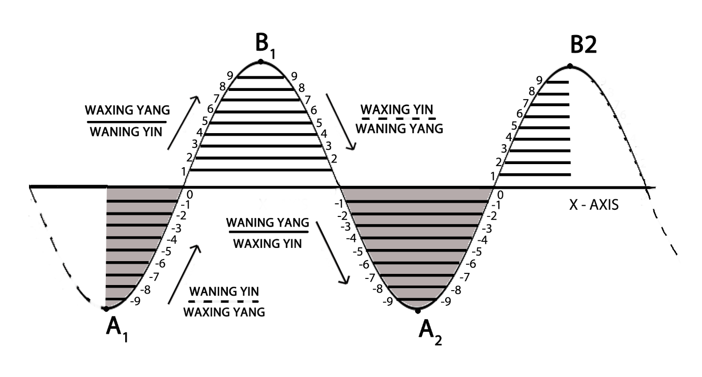 The cumulative force of all waves deposits us on the near side of its summit and continues rising to a maximum yang turning point. As this happens, before the waves begin their journey back to Earth, we explore horizons opened by this highest point of visible Creation, noting gifts of hindsight that it makes available. Then we gather on the far side of the summit and ride the cumulative force of our now descending waves back down through all 9 levels. We do so mindfully, cherishing the vision of all that has been learned in the course of our long evolutionary ascent.